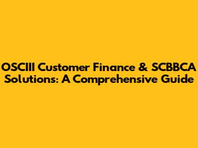 OSCIII Customer Finance & SCBBCA Solutions: A Comprehensive Guide