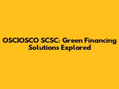OSCIOSCO SCSC: Green Financing Solutions Explored