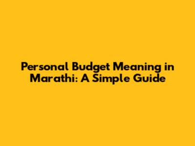 Personal Budget Meaning In Marathi: A Simple Guide