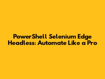 PowerShell Selenium Edge Headless: Automate Like A Pro