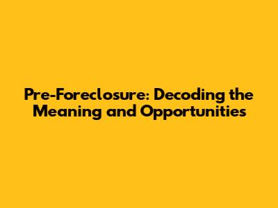 Pre-Foreclosure: Decoding The Meaning And Opportunities