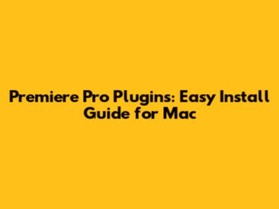 Premiere Pro Plugins: Easy Install Guide For Mac