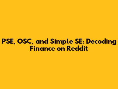 PSE, OSC, And Simple SE: Decoding Finance On Reddit