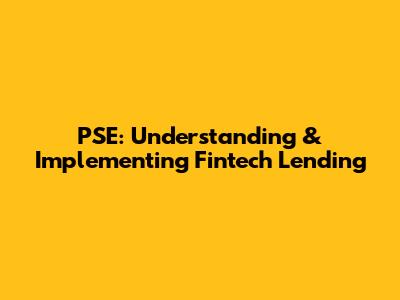 PSE: Understanding & Implementing Fintech Lending
