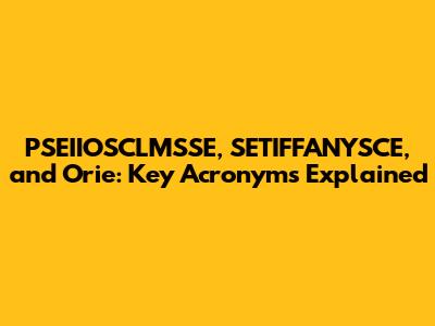 PSEIIOSCLMSSE, SETIFFANYSCE, And Orie: Key Acronyms Explained