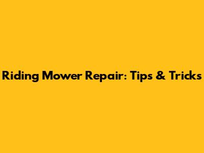 Riding Mower Repair: Tips & Tricks