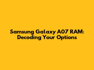 Samsung Galaxy A07 RAM: What You Need To Know