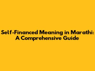 Self-Financed Explained: Marathi Meaning & Financial Insights