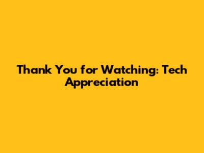Thank You For Watching: Tech Appreciation
