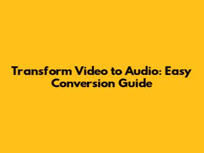 Transform Video To Audio: Easy Conversion Guide