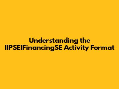 Understanding IIPSEIFinancingSE Activity Format