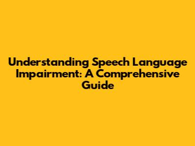 Understanding Speech Language Impairment: A Comprehensive Guide