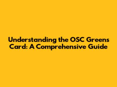 Understanding The OSC Greens Card: A Comprehensive Guide