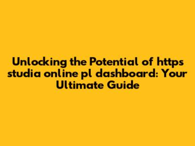 Unlocking Https Studia Online Pl Dashboard: A User's Guide