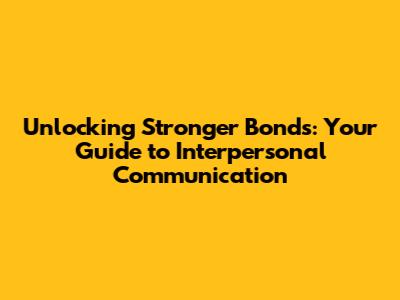 Unlocking Stronger Bonds: Your Guide To Interpersonal Communication