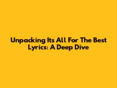 Unpacking 'It's All For The Best' Lyrics: A Deep Dive