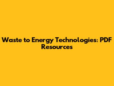 Waste To Energy Technologies: PDF Resources