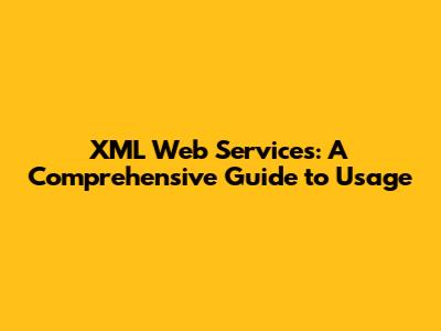 XML Web Services: A Comprehensive Guide To Usage